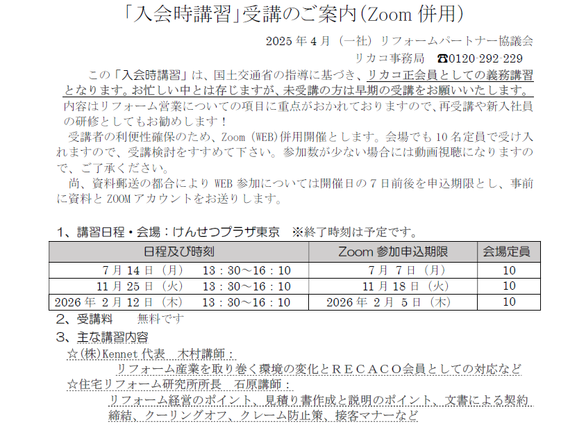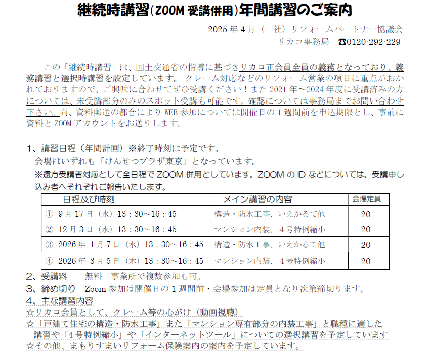 2025年度最終の入会時講習・継続時講習のご案内です。