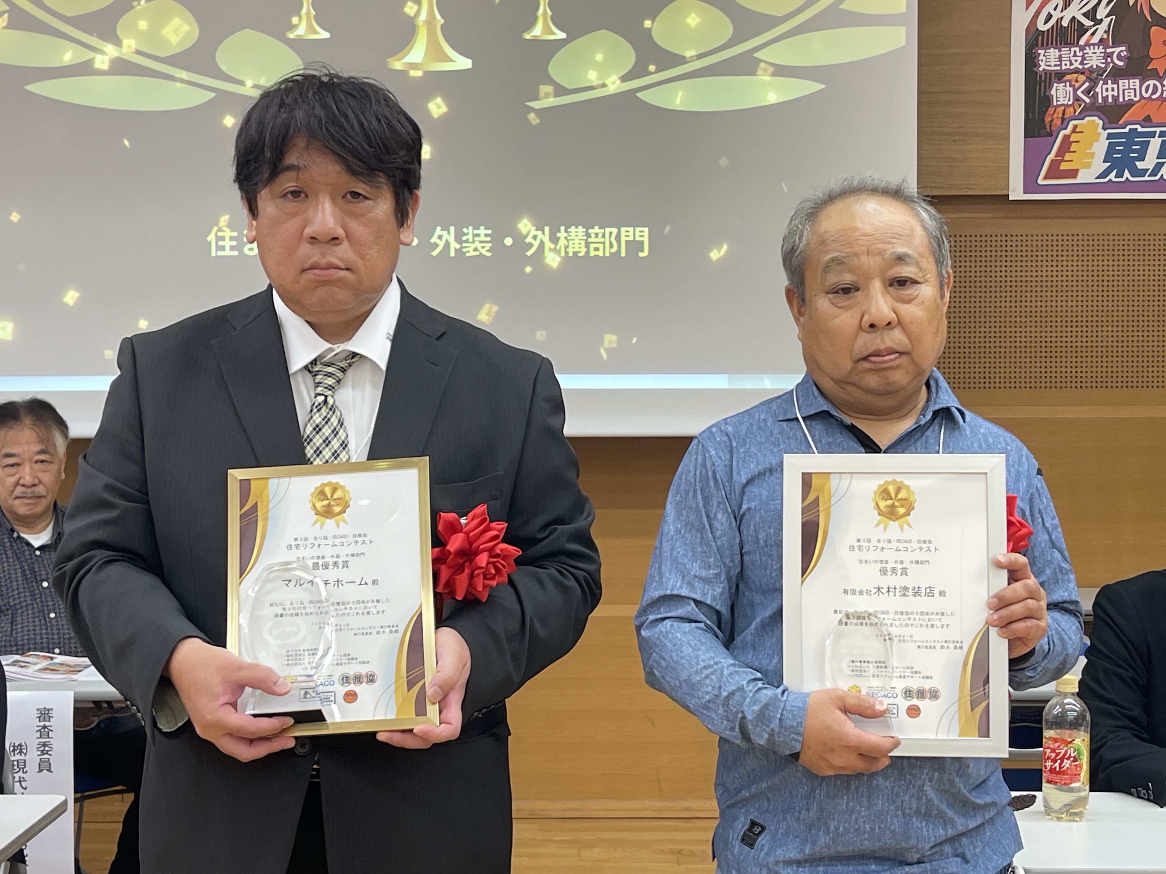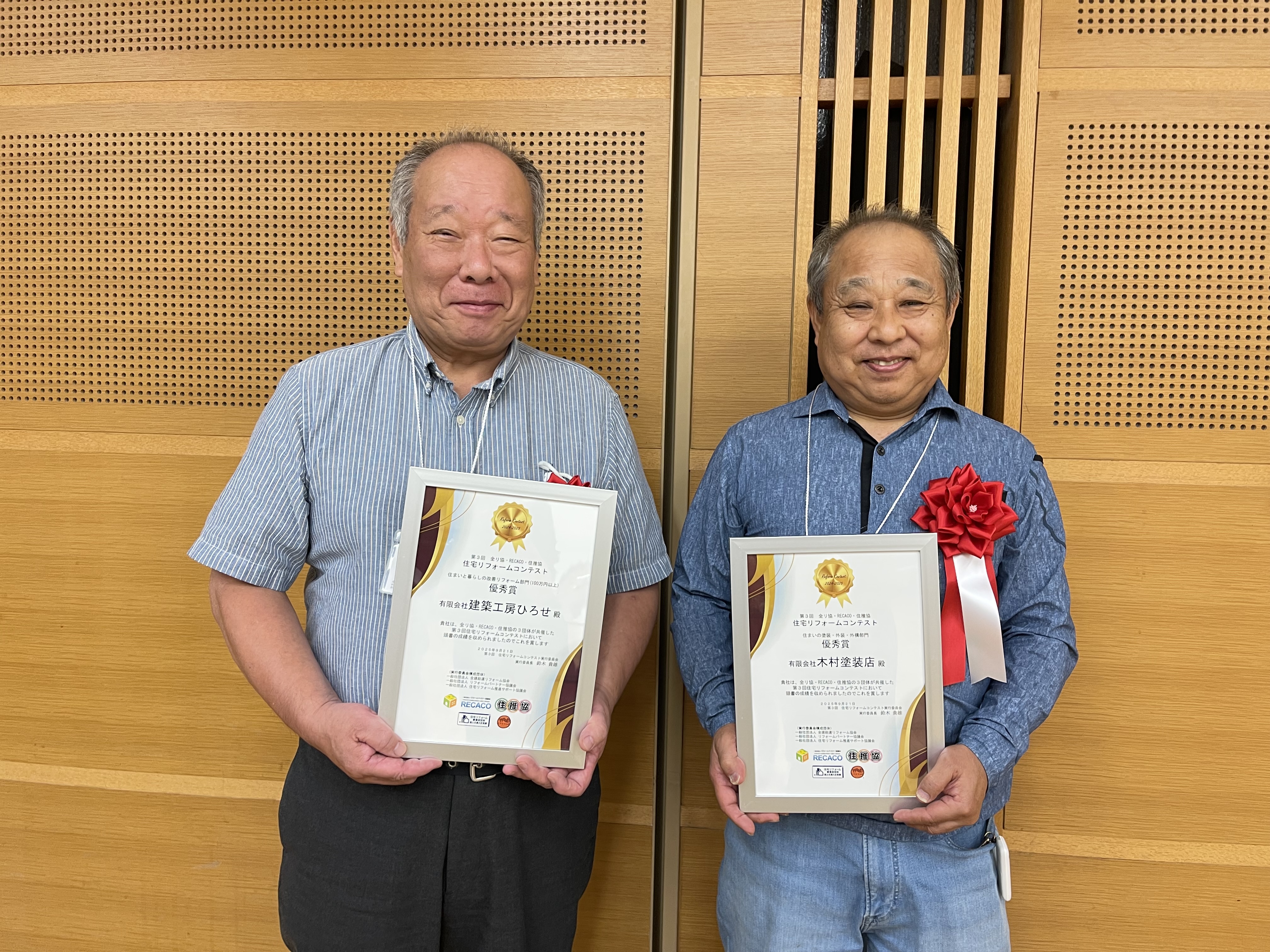 【優秀賞】左より(有)建築工房ひろせ 広瀬代表取締役 (有)木村塗装店 木村取締役