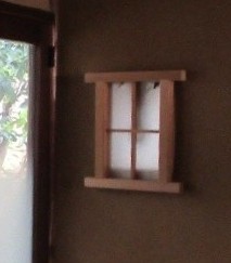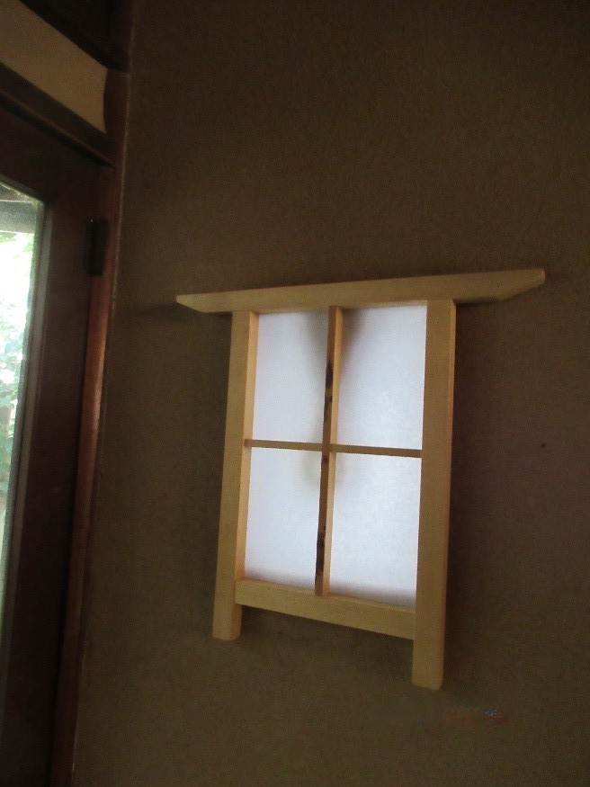 - 掛け障子の軸自体は、米ヒバを利用。竹材を映えるようにするために、少し白みが強い木材を選定し、掛け障子の真ん中に竹材を貼り付けた。