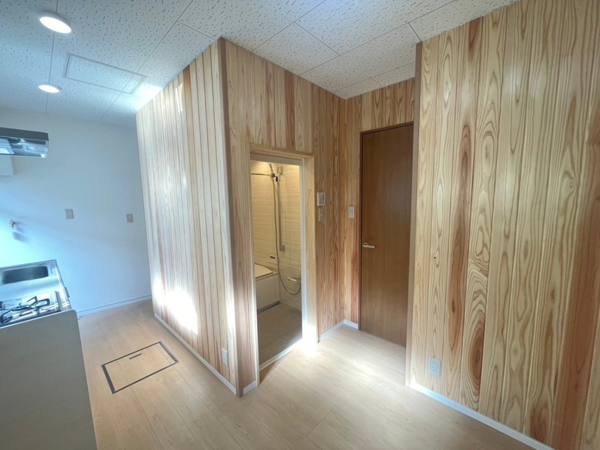 設備の更新と収納整理と一緒に杉の羽目板を使った木の香りと暖かみのある空間への改善工事
